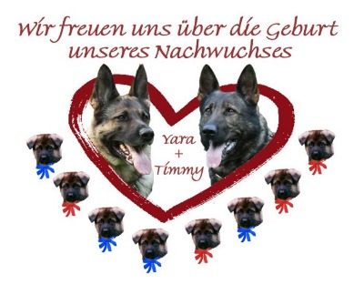 Am 09.02.2009 fiel der Wurf über unsere Yara und Timmy vom Zollernblut. Wurfstärke 4/4. Zwei Rüden sind schwarz-gelb und zwei sind dunkelgrau. Bei den Hündinnen ist eine schwarz-gelb und drei dunkelgrau. Der A-Wurf vom Hirtental erhielt den hervorragenden Zuchtwert von 68.